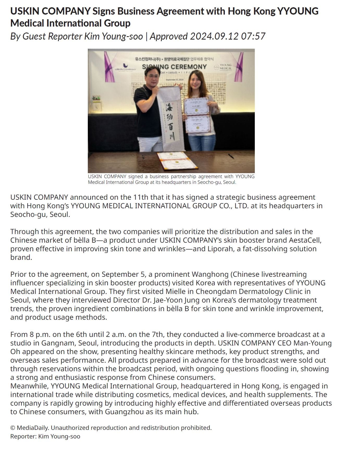 Home / News / News News News News Exhibitions News Exhibitions Uskin Company Partners With Yyoung Medical International for Sales Expansion in China 작성자 uskinlab_usr 작성일 2024.09.12 조회 91 https://www.newswire.co.kr/newsRead.php?no=996604 Prev Uskin Company Launches Exovera 3X & Exovera Exosome Soothing Mask Next Uskin Company Participates With Their Partners, Sardenya Colombia, in AMWC Latin America 목록보기