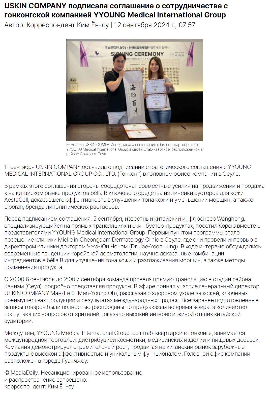 Главная / Новости / Новости Новости Новости Новости Выставки Новости Выставки Uskin Company заключает партнёрство с Yyoung Medical International для расширения продаж в Китае Author uskinlab_usr Date 2024.09.12 Views 43 https://www.newswire.co.kr/newsRead.php?no=996604 Prev Uskin Company запускает продукт Exovera 3X и Exovera Exosome Soothing Mask Next Uskin Company принимает участие в AMWC Latin America вместе с партнёром Sardenya Colombia List